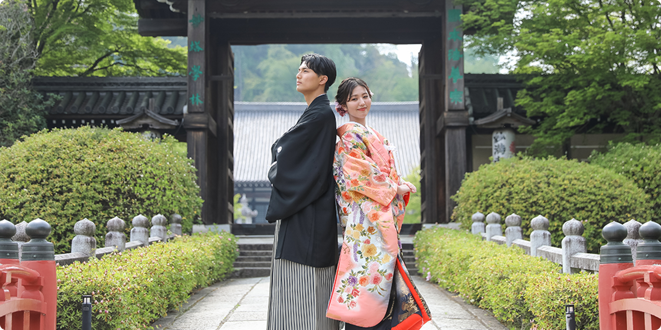 厳かな仏前式から、趣ある庭園での前撮りまで、お二人の門出を美しく彩ります。